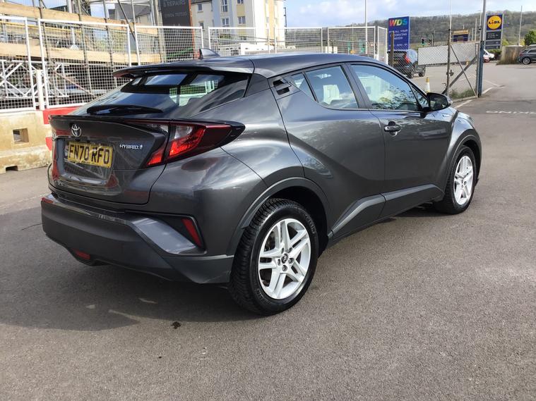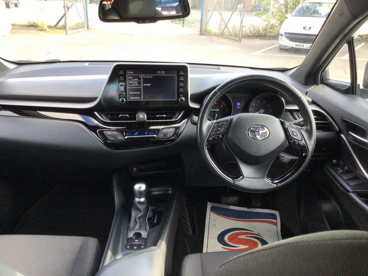 Here we have a 2020 Toyota C-HR 1.8 VVT-h Icon SUV with 99000 miles on the clock, powered by a Petrol Hybrid engine and equipped with a CVT Euro 6 (s/s) transmission delivering 122 ps. This reliable SUV comes with a new MOT and is ULEZ compliant, making it perfect for city driving. The vehicle can comfortably accommodate up to 5 passengers with its 5 seats and 5 doors. The sleek design is enhanced by 17in Alloy Wheels, Automatic Headlight Cut-Off, a Black Front Bumper, and a combination of Black Upper Front Grille and Black and Body-Coloured Rear Bumper. This SUV makes for an efficient and stylish choice for anyone in need of a versatile and eco-friendly vehicle.