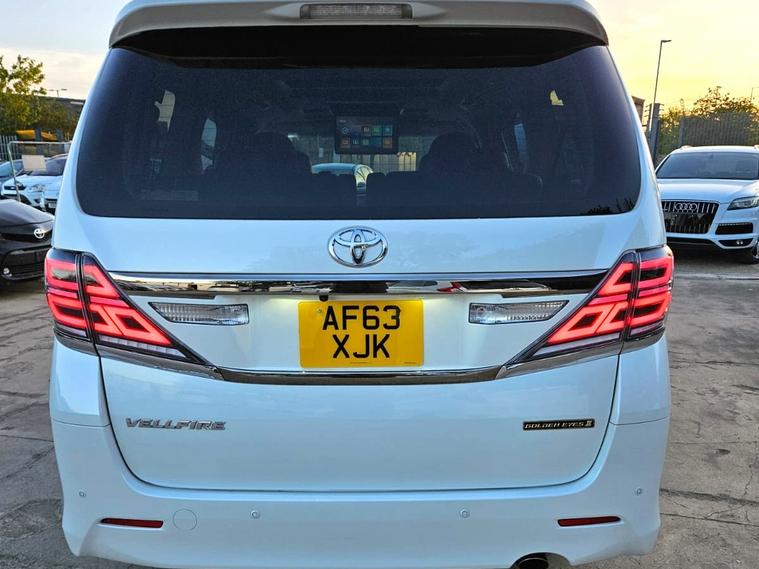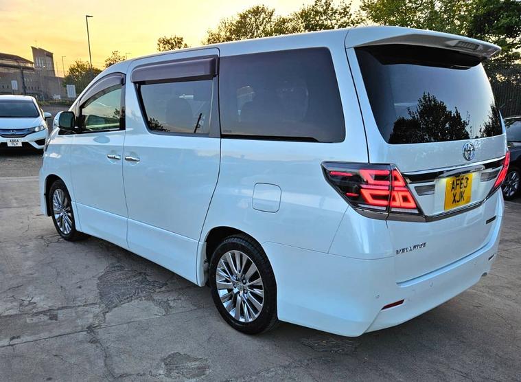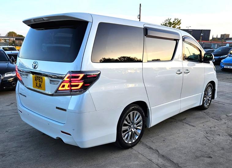 Carolina Motors UK is pleased to offer this beautiful fully upgraded Toyota Vellfire with Dual Sunroof for sale.REG AF63XJKSpecial Warranty OfferThis car comes with 42Months Gold Warranty. (Engine, Gearbox, Electricals)FREE AA - 12MONTHS BREAKDOWN COVERBeautifully UPGRADED Toyota Vellfire 2014 Golden Eyes 2 Edition - Sporty Look. Fresh Import from Japan.2.4L engine with Eco mode Fuel efficient engine. ULEZ & CAZ free. Half Leather Seats with Alcantra Fabric. Alloy Wheels. Dual Sunroof. VIPER security sytem installed.Original Mileage 73600miles. Can be verified with auction sheet and Carvx report. Auction Grade 4B.Fresh MOT valid till APRIL 2027.Low road tax for this vehicle category.OPTIONAL ACCESSORIES INSTALLED WORTH - GBP 12001. CAR RADIO UNITS REPLACED. FRONT - 12.1'' TESLA TYPE ANDROID SCREEN FITTED - CARPLAY/ANDROID AUTO.2. ROOF - 15.6'' ANDROID TOUCH SCREEN FITTED.BOTH SCREENS CAN BE PLAYED INDIVIDUALLY.3. LED tail lights can be fitted. Optional Accessories can be installed1. Digital Speedometer with Vellfire Car software - £4502. Modern Steering Wheel can be fitted for £400Full Engine Service done.(Original Toyota Parts)Gearbox service done.Full Valeting/polishing done.Front & Rear Fog lights.7 Seater with Half leather Seats and Recliners.Perfect Tyres2 KEYS PROVIDED( MORE EXTRA KEY CAN BE PROVIDED FOR £90 )Additional Features.Dual Sunroof. Alloy Wheels. Dual Zone Climate Control Air conditioning. Electric Sliding Door. Dome Lights. Tinted Windows, Push Start Stop Keyless drive and entry system. Rear View Camera. Wind deflectors. Foldable Electric Side Mirrors, All 4 Electric Windows. Front and Rear Parking Sensors, Cruise Control, Front and Rear Climate Control, and many moreV5C is ready and car ready to go. Buyer will be the first owner to drive in UK.Car is in Peterborough PE1 area and can be seen any day. Feel free to contact anytime on 01733604284 or whatsapp 01733604284Please visit our dealer's website