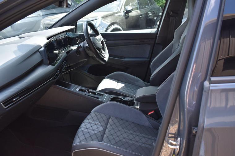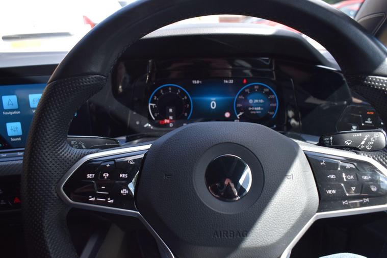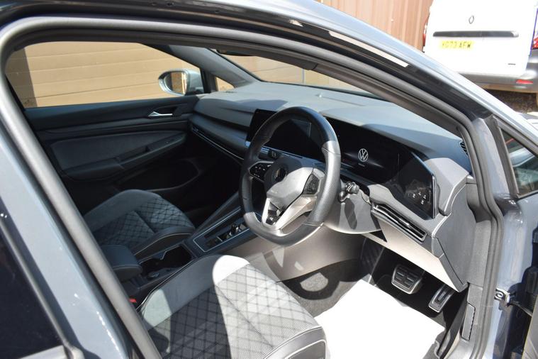 Finished in Grey with cloth interior, one private owner from new, full VW service history, front and rear parking sensors, 17'' alloy wheels, automatic, cruise control, keyless entry, paddle shift, Apple Car Play, Bluetooth, DAB radio, Bluetooth, sat nav, air con, HPI clear, finance available with this vehicle... for further information please contact us on 01483334205. This 2022 Volkswagen Golf eTSI R Line presents an exceptional opportunity with its remarkably low mileage of just 12096 miles, having been owned by only one individual. This Euro 6 compliant model boasts a 1.5 litre petrol hybrid engine, offering an efficient and responsive driving experience. Its R Line trim level ensures a sporty aesthetic and enhanced features, including striking LED headlights with integrated turn signals and an automatic dusk sensor for the headlights. Inside, you'll find a mobile phone interface complete with wireless inductive charging, ensuring your devices stay powered up on the go.The Golf eTSI R Line also features electronic climate control for personalised comfort and the Discover Navigation system, which includes Bluetooth connectivity for seamless audio streaming and hands free calls. The generous boot space provides ample room for luggage or shopping, making it a practical choice for everyday use and longer journeys. With an impressive acceleration of 0-62mph in just 8.5 seconds, this Golf demonstrates a performance that sets it apart from many other vehicles in its class, offering both efficiency and dynamic capability.