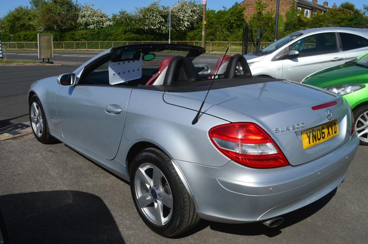 STUNNING MERCEDES BENZ SLK+THIS AMAZING WELL CARED FOR CAR COMES WITH UNMARKED RED LEATHER HEATED SEATS+AIR SCARF+AUTO LIGHT AND RAIN SENSORS+ELECTRIC WINDOWS+PARKING SENSORS+TWO KEYS+RADIO/CD+MULTI FUNCTION STEERING WHEEL+UNMARKED ALLOY WHEELS+FIRST TO SEE WILL BUY+COMES WITH NEW 12 MONTH MOT+WARRANTY INCLUDED+
