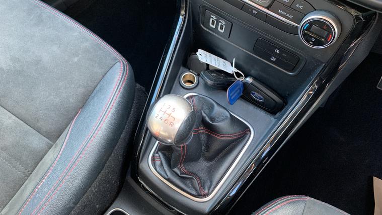 - Gearshift Knob - Leather-Trimmed with Black Insert and Aluminium-Finish Ring and Red Stitching