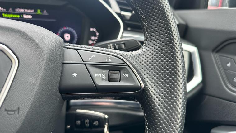 - 3-Spoke Leather Multi-Function Steering Wheel - S Badging and Grips in Perforated Leather with Contrast Stitching