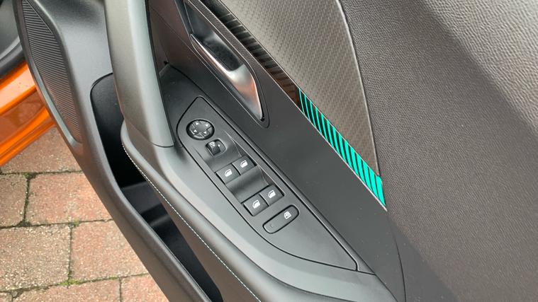 - Mint Green Contrast Stitching to Front Centre Console - Door Panels - Dashboard Facia