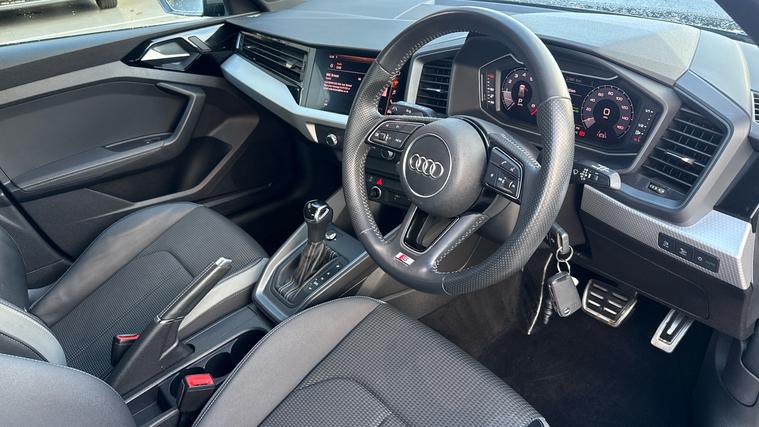 - 3-Spoke Leather Multi-Function Steering Wheel with Paddles - S Badging - Grips in Perforated Leather and Contrast Stitching