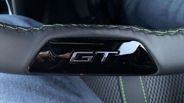 - Mistral Full-Grain Perforated Leather Steering Wheel with Lime Green Stitch Detail and Satin Chrome GT Emblem