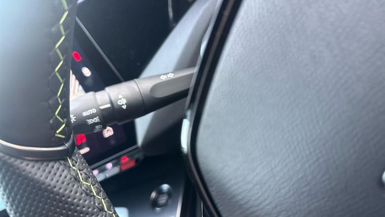 - Multifunction Full Grain Leather Steering Wheel with Admite Green Stitching - Chrome Detailing and GT Badging