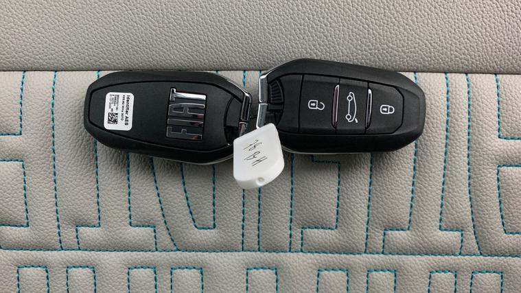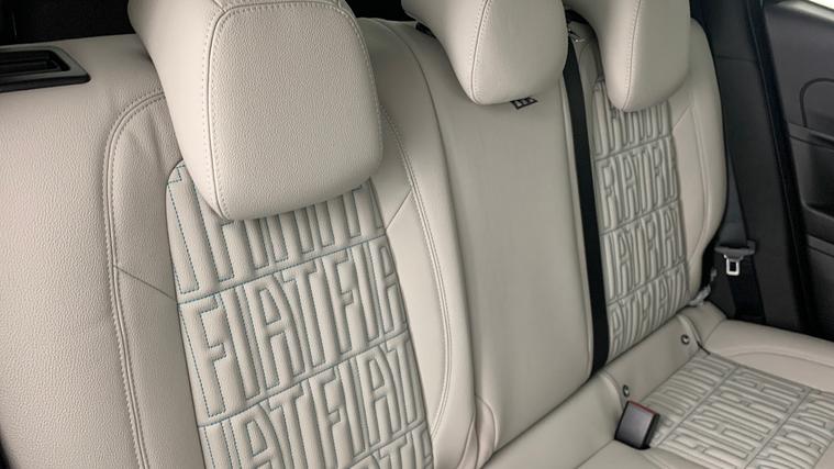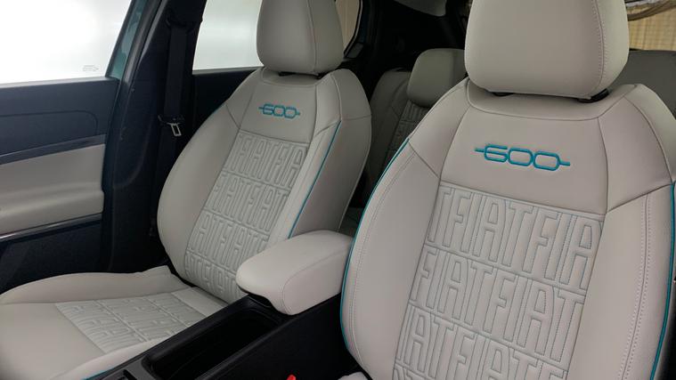 • Synthetic Leather - Fiat Ivory Monogram with Turquoise Details