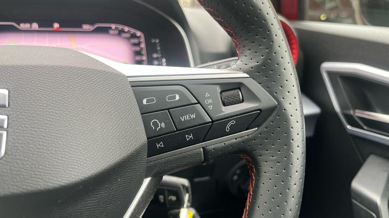 - Perforated Leather Flat-Bottomed Steering Wheel with Red Stitching and FR Logo with Leather Gear Knob and Handbrake