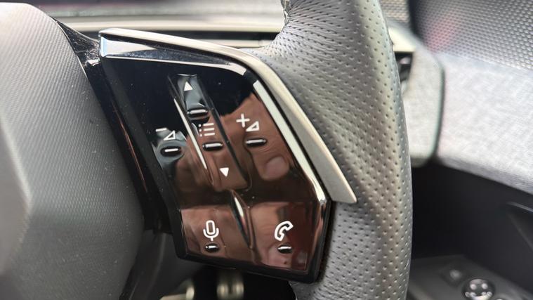 - Compact Heated Multifunction Steering Wheel - Full Grain Leather with Iced Clay Stitching with Gloss Black-Satin Chrome Detailing and GT Badge