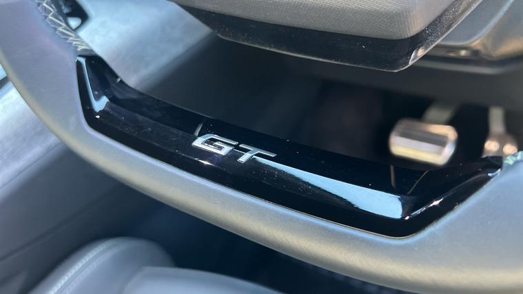 - Compact Heated Multifunction Steering Wheel - Full Grain Leather with Iced Clay Stitching with Gloss Black-Satin Chrome Detailing and GT Badge
