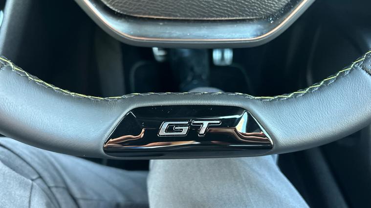 - Mistral Full-Grain Perforated Leather Steering Wheel with Lime Green Stitch Detail and Satin Chrome GT Emblem