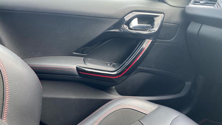 - Door Panel Grab Handle Finish - Piano Black with Red Pinstripe Detail