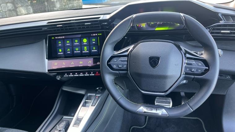 - Multifunction Full Grain Leather Steering Wheel with Admite Green Stitching - Chrome Detailing and GT Badging