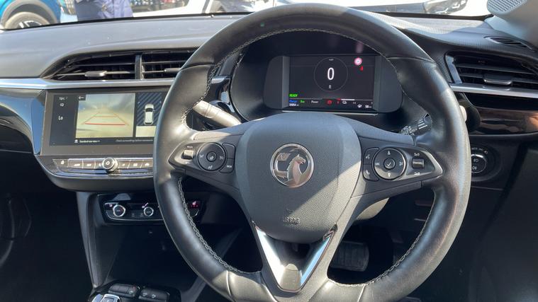 - Steering Wheel - Three-Spoke Design - Leather Covered Flat Bottom - Satin Chrome-Effect Bezel