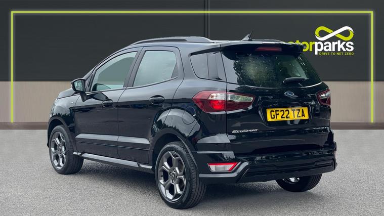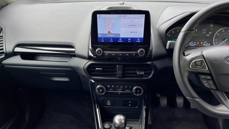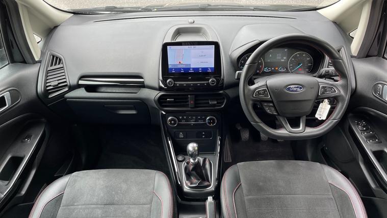 A powerful EcoSport ST-Line with the 140PS 1.0 EcoBoost engine. Never lose your way again with the inbuilt Sat Nav, plus our EcoSport comes with Rear Parking Sensors with Colour Rear Camera, Cruise Control, Automatic Headlights, Rain Sensing Wipers, One-Touch Electric Windows, Ford SYNC Bluetooth, Air Conditioning, a Heated Windscreen and a DAB Radio with USB and AUX in. Qualifies for Warranty4Life*.