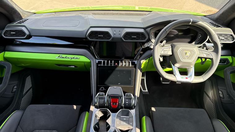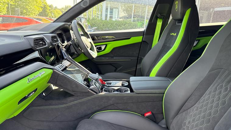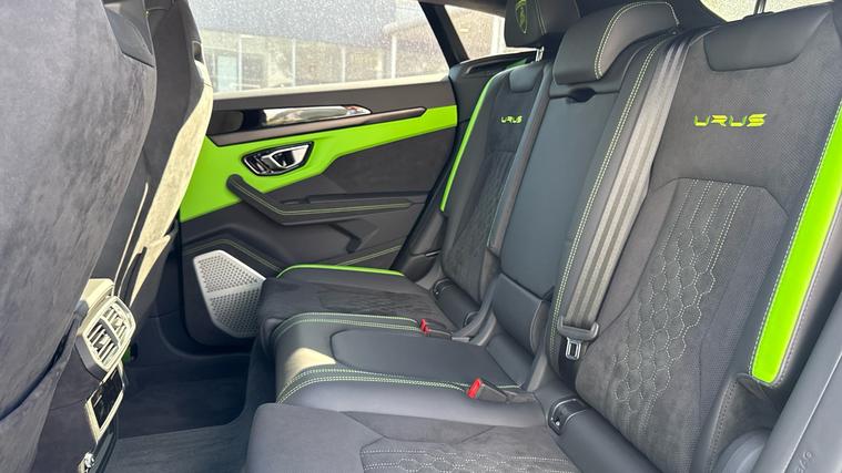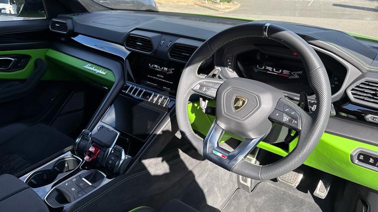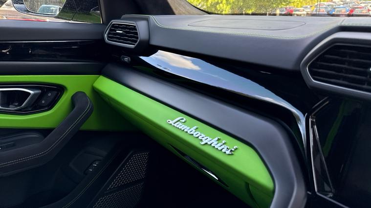 Lamborghini Urus 4.0 V8 S finished in Verde Selvans with a Nero Ade interior and a Contrast Color of Verde Fauns. Style Package in High Gloss Black with front splitter, Bicolor Sportivo Alcantara with Performante trim, Rims Taigete 23 Shiny Black, Black Roof Rails, Heated and heat-reflective windscreen, Panoramic Roof, Privacy Glass Acoustic and Heat Insulated, Full Electric Heated Front Seats with ventilation and massage, Ambient Light Package, Advanced 3D BangOlufsen Sound System, Park Assistance Package with Remote ParkAssist, Head-Up Display, Soft Close Doors, Lamborghini ANIMA 4 mode Leather, Maintenance pack 4 years, Warranty extension 4th year.
