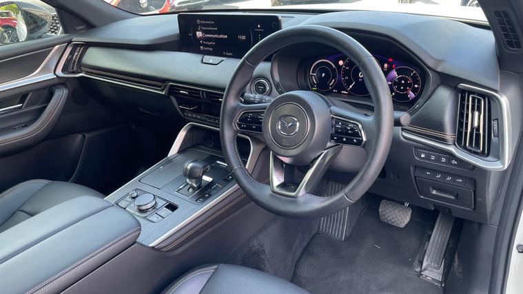 This vehicle is a demonstration model, and therefore the mileage is subject to change. Please call to confirm details. Discover the all-new Mazda CX-60 2.5 PHEV Homura Plus. Experience driving elevated with a panoramic sunroof that invites the sky inside, and a BOSE audio system immersing you in perfect harmony. Surround cameras ensure safety, while adaptive cruise control provides a seamless journey. The power tailgate adds convenience at every stop, and keyless entry puts control at your fingertips. Stay ahead with a heads-up display and embrace ultimate comfort with climate-controlled front seats. This is luxurious adventure redefined. Elevate your drive with the Mazda CX-60, where innovation meets elegance. Rediscover the joy of driving.