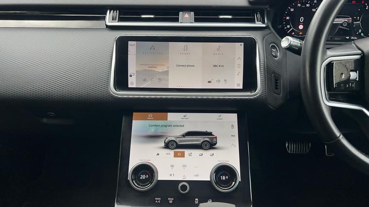 A fantastic premium SUV with a great range of features and optional extras, and presented in a brilliant specification, offering an incredible driving experience. Our Range Rover Velar Edition is finished in Santorini Black matched with 20-inch Style 7014 wheels in Gloss Black, over Ebony leather interior, and comes equipped with some brilliant features and optional extras, including, 14-way Heated front seats with Driver Memory function, Heated Steering Wheel, Two-zone Climate Control, Meridian Sound System, Privacy Glass, Sliding Panoramic Roof, LED Headlights with Signature DRL, Keyless Entry, Cruise Control, Lane Keep Assist, Blind Spot Assist, Front and Rear Parking Aids, 3D Surround Camera, Apple CarPlay and Android Auto, DAB Radio, and much more. Call today for more information.