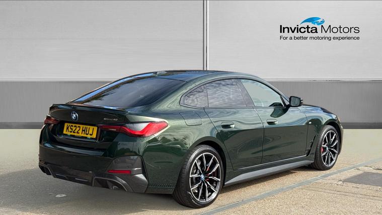 This 2022 BMW i4 250KW M Sport Gran Coupe is in the very popular San Remo Green Metallic with the Charcoal M Sport Leather. This car also has Park Assist Plus and M Sport Pro Pack. Call today!!!. Experience the thrill of this 2022 all-electric BMW i4 250kW eDrive40 M Sport. With the M Sport Pro Pack, revel in the luxury of M Sport leather and state-of-the-art climate control. Navigate your world effortlessly with HD quality wide screen Sat Nav and Carplay, while Park Assist Plus makes parking a breeze with a 360 Camera. Stay in control with cruise control, and always be road-ready with two charging cables. The BMW i4 seamlessly blends performance with innovative technology, offering a drive that's as exhilarating as it is efficient. Discover the future of driving, all wrapped in the iconic, bold styling you've come to expect from BMW.