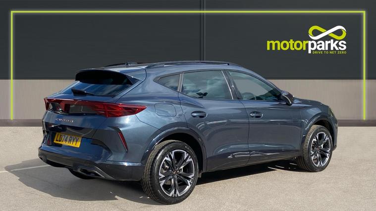 The 2024 Formentor 1.5 eTSI V1 turns up the premiumhigh spec, smart tech, and standout styling make it feel far above its price band. The 2024 CUPRA Formentor 1.5 eTSI 150 V1 combines stylish design with a rich set of interior and convenience features. It comes with 18 Sonora machined alloy wheels, full LED lighting (including rear infinite light strip with CUPRA logo), and gloss-black roof rails and window surrounds. Inside, you get a large 12.9-inch touchscreen navigation system (with wireless Apple CarPlay and wired Android Auto), a 10.25-inch digital cockpit, three-zone Climatronic climate control, ambient interior lighting, heated supersport leather steering wheel with satellite buttons and shift paddles, and sport seats with contrast (copper) stitching. Safety and driver-assistance tech are well covered with adaptive cruise control, front and rear parking sensors, lane assist, front assist, dynamic road sign display, and drive profile selection. The trim also includes cloth/sport upholstery, copper detailing, LED headlights with dynamic indicator, heated + folding mirrors, and welcome lightsall wrapped up in a compact SUV that balances style, tech, and daily usefulness.