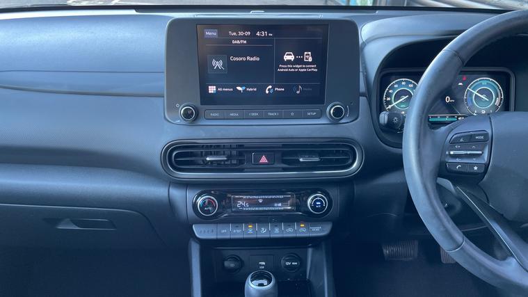 A stylish low mileage automatic Kona SE Connect finished in Phantom Black. Discover the remarkable Hyundai Kona 1.6 GDi Hybrid SE Connect, where innovation meets style. Seamlessly integrate your digital life with Apple CarPlay and Android Auto, keeping you connected on the go. Glide through every journey with effortless cruise control and confidently navigate tight spots with rear parking sensors. The Kona's sleek 16-inch alloys and refreshing air conditioning enhance every ride. Enjoy your favorite tunes with crystal-clear quality on the DAB radio. Experience the future of driving with the perfect blend of technology, comfort, and design in the Hyundai Kona. Your adventure awaits.