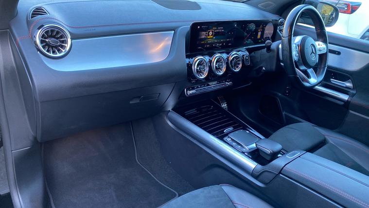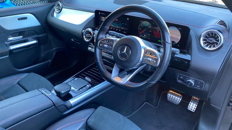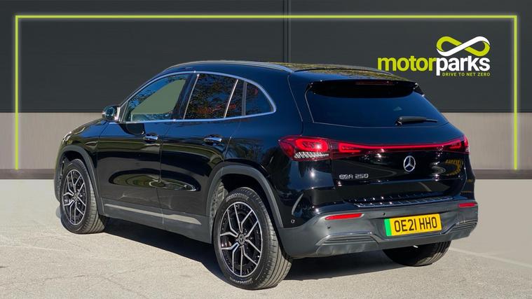 The 2021 EQA 250 AMG Line offers top-tier luxury and tech in an electric package upscale interiors, premium finishes, and advanced features make every drive feel special. The 2021 Mercedes-Benz EQA 250 AMG Line marries electric sophistication with sporty luxury. It features AMG Line exterior styling (including front apron with air curtain, rear diffuser, black panel radiator grille with chrome twin blades), LED high-performance headlights with adaptive high-beam assist, privacy-tinted rear glass, and polished aluminium roof rails. Inside you'll enjoy a 10-inch digital instrument cluster paired with a 10-inch touchscreen infotainment display, AMG sports seats upholstered in Artico man-made leather/Dinamica microfiber, a flat-bottom AMG multifunction steering wheel in Nappa leather with shift paddles, heated front seats, ambient lighting in 64 colours, illuminated door-sills, keyless entry (Keyless Go), Thermotronic automatic climate control, and a power tailgate. For tech + convenience, there's EQ navigation services (charge-station map, pre-entry climate control), Mercedes-Me connect, parking sensors with reversing camera, and high DC fast-charging capability. With strong build, premium touches all round, and zero tailpipe emissions, this EQA 250 AMG Line delivers electric driving without compromise.