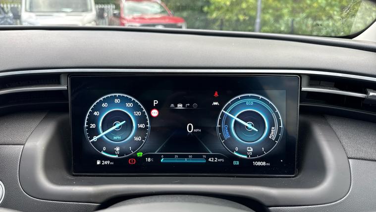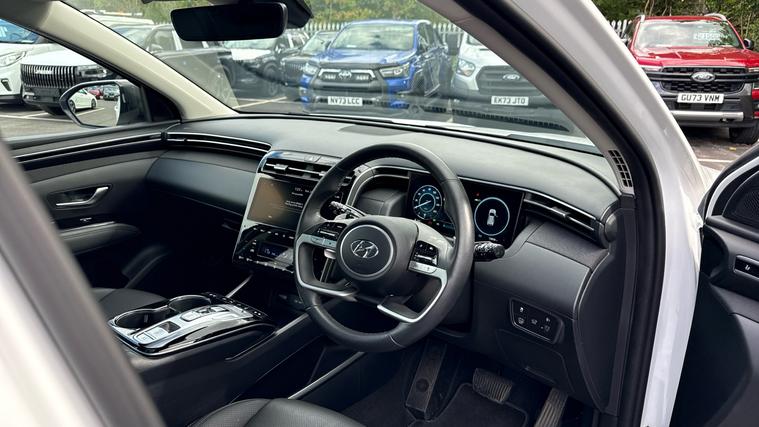 Features include Adaptive Cruise Control+Speed Limiter, Lane Assist wBlind Spot Assist, LED Lights wDusk+Rain Sensors, Climate Control and even Wireless Phone Charging. Discover the perfect balance of performance, efficiency, and technology with the 2023 Hyundai Tucson Ultimate Hybrid, finished in striking Clear White Gloss. As the flagship of the Tucson range, the Ultimate trim blends bold design with cutting-edge hybrid power and premium comfort. Powered by the 230ps 1.6 T-GDi petrol hybrid engine, the Tucson HEV delivers smooth, responsive acceleration with impressive fuel efficiency. The advanced hybrid system seamlessly combines petrol and electric power, making every journey both powerful and economical. Inside, the Ultimate trim surrounds you with luxury and innovation. Highlights include leather upholstery, heated and ventilated front seats, heated rear seats, a heated steering wheel, ambient interior lighting, and a panoramic sunroof. The 10.25-inch digital driver display and 10.25-inch touchscreen infotainment system with sat nav, Apple CarPlay, and Android Auto put everything at your fingertips, while the premium KRELL audio system makes every drive immersive.