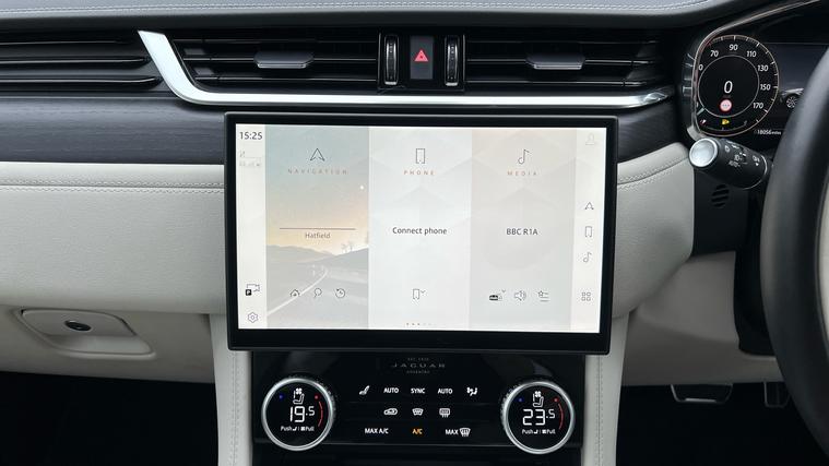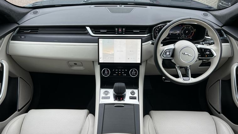 Our fantastic Jaguar F-Pace is presented in a stunning specification with a huge range of brilliant features and optional extras, complimenting a sublime drive. Our F-Pace R-Dynamic HSE Black is finished in Portofino Blue matched with the Black Exterior Pack and 21-inch Style 5104 wheels in Diamond Turned finish, over Light Oyster and Ebony split Windsor leather interior, and comes equipped with some brilliant features and optional extras, including, 16-way Heated and Cooled front seats with Memory function, Two-zone Climate Control, Meridian Sound System, Privacy Glass, Fixed Panoramic Roof, LED Headlights with Signature DRL, Keyless Entry, Adaptive Cruise Control, Lane Keep Assist, Blind Spot Assist, Front and Rear Parking Aids, Rear Camera, Apple CarPlay and Android Auto, DAB Radio, Wireless Device Charging, and much more. Call today for more information.