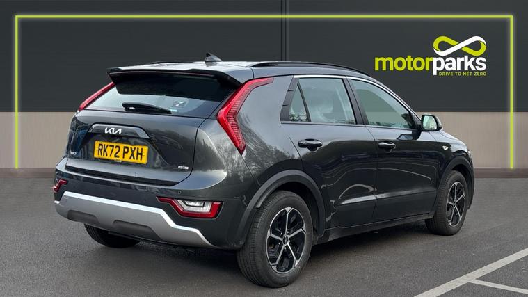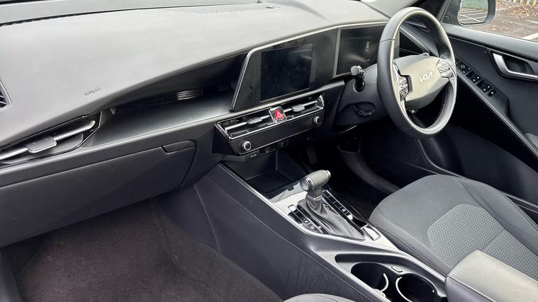 Features include Lane Assist, Pedestrian Detection, Rear Parking Sensors, LED Lights wDusk Sensors, Cruise Control+Speed Limiter and even Air Conditioning. Our Niro is presented in the fantastic Interstellar Grey Metallic paint, that on this '2' trim is equipped with 16in Alloy Wheels. This particular model uses the Self Charging Hybrid engine, that pairs a 1.6 Petrol Engine to an Electric Motor for a combined 139ps. The cabin boasts a stunning Premium Black Cloth upholstery that includes Height Adjustment for the Driver as well as a range of other adjustments for all other seats. The 8in media display takes pride of place central on the dashboard with connections included to DAB radio bands, Bluetooth and USB media devices and even Apple Carplay/Android Auto.