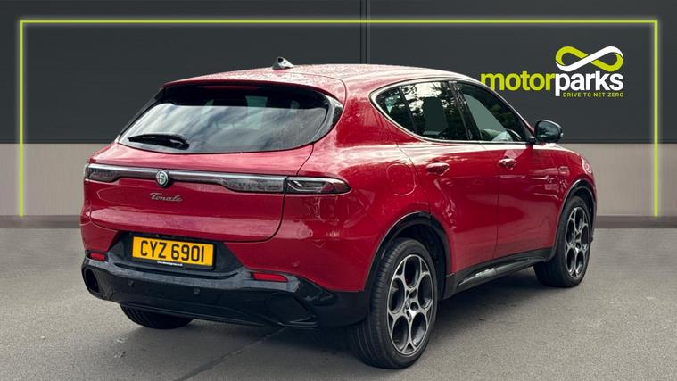 Features include the Premium Pack with Ventilated Front Seats, Powered Front Seats, LED Lights wDusk+Rain Sensors, Ambient Lighting and even Dual Stage Valve Suspension. Experience Italian style and sporty sophistication with the 2024 Alfa Romeo Tonale Veloce 1.5 MHEV, finished in vibrant Alfa Red Gloss. This compact SUV combines Alfa Romeo's signature design flair, advanced mild-hybrid technology, and premium features for a driving experience that's both exciting and efficient. Powered by the 1.5L mild-hybrid petrol engine, the Tonale Veloce delivers smooth, responsive performance with enhanced fuel efficiency and lower emissions, perfect for city streets or spirited weekend drives. Inside, the Veloce trim offers a driver-focused, premium cabin. Highlights include leather and Alcantara sports seats, heated front seats, dual-zone climate control, ambient interior lighting, and a 12.3-inch digital driver display. The 10.25-inch touchscreen infotainment system with Apple CarPlay, Android Auto, sat nav, and premium audio keeps you connected and entertained at all times.