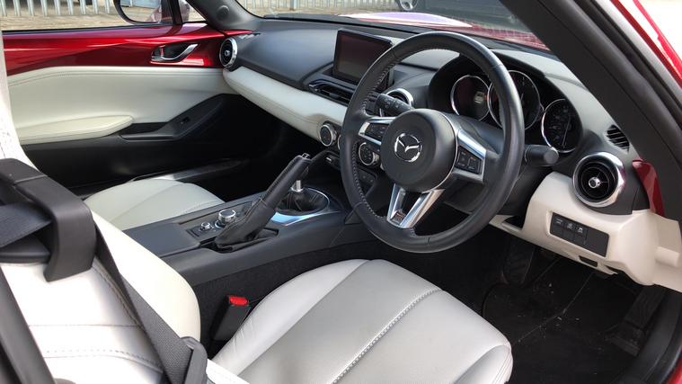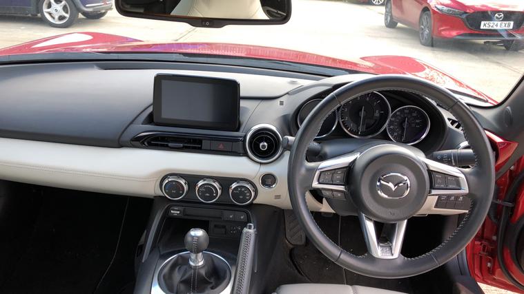 This our Mazda MX-5 with less than 11, 000 miles comes equipped with Heated Front Seats, Mazda Navigation, Blind Spot Warning, BOSE Sound and even Reverse Camera. Experience pure exhilaration with the Mazda MX-5 2.0 184 GT Sport Tech 2dr. Feel the thrill of the open road with its power retractable hardtop, while staying connected through Apple CarPlay, Android Auto, and integrated navigation. Immerse yourself in the premium BOSE sound system as you breeze past the competition, assured by the advanced safety features like Blind Spot Monitoring, Lane Departure Warning, and Rear Cross Traffic Alert. Experience unrivaled comfort with 3-stage seat heaters and the ease of a keyless engine start-stop button. This is driving redefined. This is Mazda.