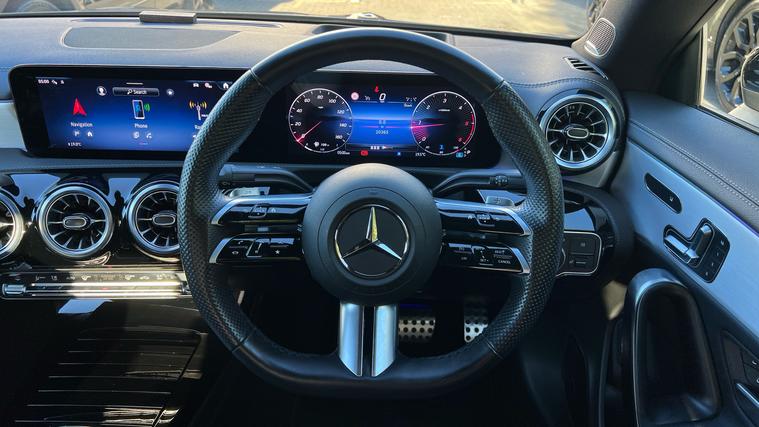 This brilliant four-door coupe is presented in an elegant specification, and in Premium Plus trim, features a huge range of luxury features . Our Mercedes CLA 200 Premium Plus is finished in Mountain Grey over Black leather interior, and comes equipped with some great features and optional extras, including, 14-way Heated electric front seats with Memory function, Two-zone Climate Control, Burmester Sound System, Privacy Glass, Sliding Panoramic Roof, LED Headlights, Keyless Entry, Cruise Control, Lane Departure Warning, Front and Rear Parking Sensors, 3D Surround Camera, Head-up Display, Apple CarPlay and Android Auto, DAB Radio, Wireless Device Charging, and much more. Call today for more information.