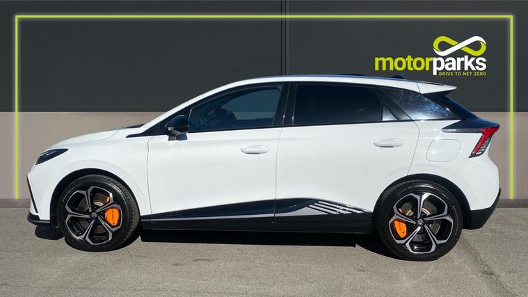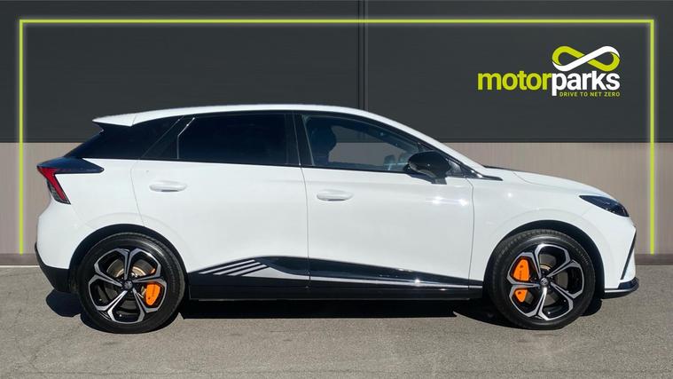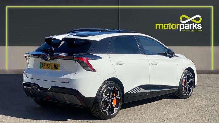 The MG4 XPOWER brings supercar pace, premium finishes, and cutting-edge EV techan exhilarating drive with luxury built in. The MG4 XPOWER (320 kW / 64 kWh) is a thrilling electric hatch that delivers high-performance with premium tech and comfort. It boasts 435 bhp, 600 Nm of torque, and a 0-62 mph time of about 3.8 seconds, while still delivering an WLTP range of roughly 239 miles. Inside you get a 10.25-inch floating touchscreen with sat nav, Apple CarPlay + Android Auto, plus a 7-inch digital driver display. Premium touches include Alcantara upholstery, heated front seats and heated steering wheel, a wireless charger, leather steering wheel, metal sports pedals, and a dark headlining. Convenience is high thanks to a height-adjustable loading floor, 360-degree parking camera, rear side privacy glass, auto headlights, rain-sensing wipers, one-pedal drive modes, multiple driving modes (Eco, sport, etc.), and a full suite of driver-assist tech like blind spot detection, lane-keep assist and adaptive cruise control. The styling is bold too 18-inch Cyclone alloy wheels with orange calipers, twin aero rear spoiler, and twin-tone trim give it a sporty, premium edge.