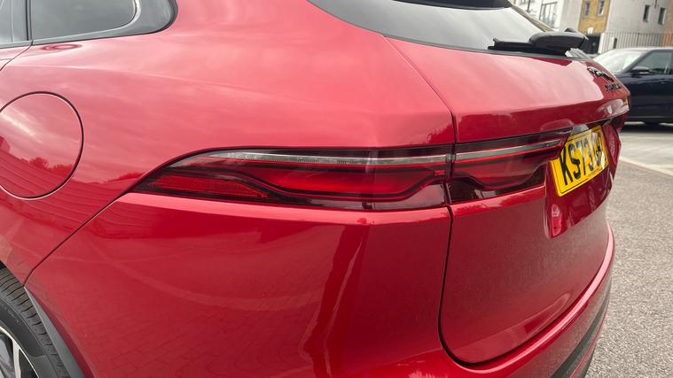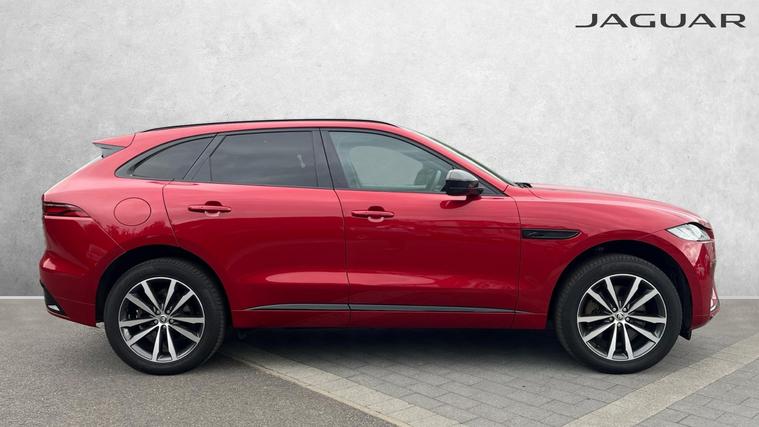The 2023 F-PACE P400e R-Dynamic SE Black combines luxury finishes, tech-rich features and premium design throughout. A refined, feature-packed SUV that truly stands out. The 2023 Jaguar F-PACE P400e R-Dynamic SE Black is thoughtfully equipped with premium features from the ground up. Inside you'll find a high-resolution digital driver display paired with the Pivi Pro infotainment touchscreen that supports wireless Apple CarPlay and Android Auto, plus integrated voice and navigation systems. Comfort is elevated with heated leather sport seats, ambient interior lighting, and a panoramic glass roof creating a bright, airy cabin. On the exterior, gloss-black styling accents (roof rails, mirror caps and window surrounds) give it a refined blacked-out look, complemented by large alloy wheels and full LED headlights with signature J-Blade daytime running lights. Convenience is well-covered with a power tailgate, electric folding heated mirrors, front and rear parking sensors with a 360 camera, and keyless entry/start. Safety and driver assistance are top-tier: adaptive cruise control, lane-keep assist, traffic-sign recognition and blind-spot monitoring are standard. This F-PACE brings together luxury materials, modern connectivity and SUV practicality in one sophisticated package.