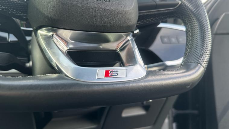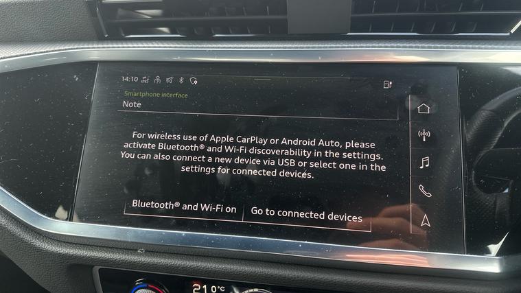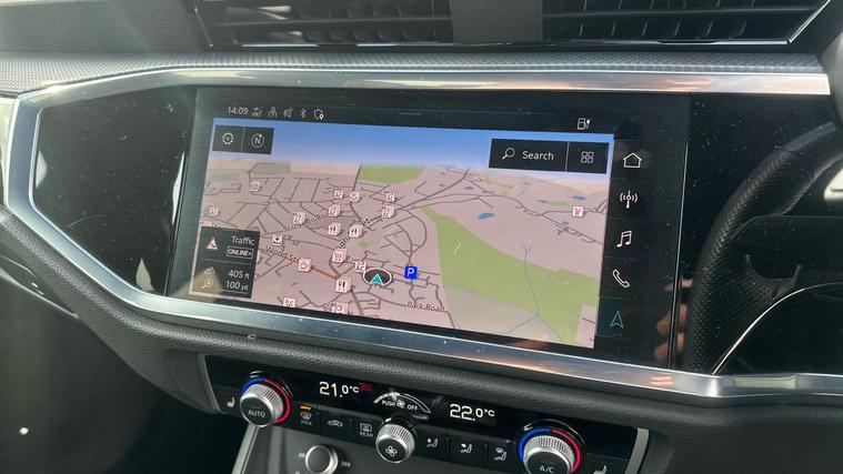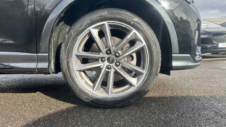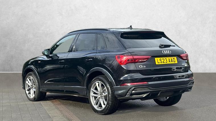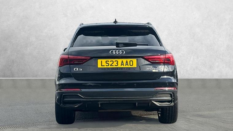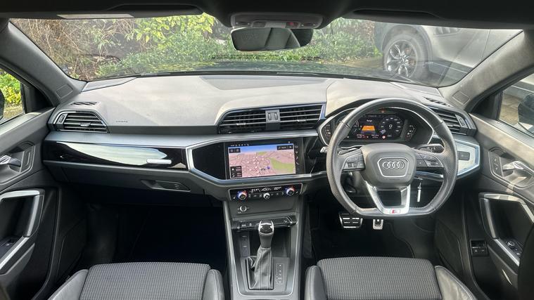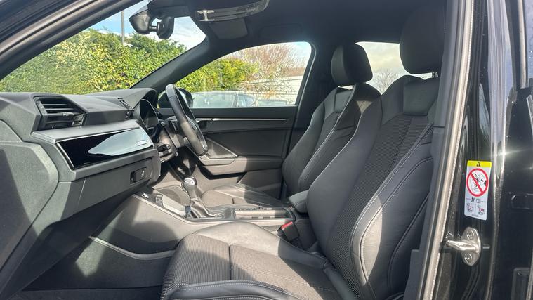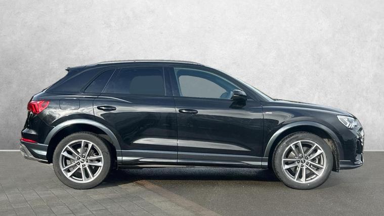 A stunning Mythos Black Audi Q3 Black Edition with Pulse cloth/twin leather, Cruise control and sat nav. Introducing the Audi Q3 45 TFSI e Black Edition 5dr S Tronic. Crafted with precision and elegance, this model features premium Pulse cloth/twin leather in striking black and silver, accentuated by rock grey stitching and black leather stripes. Experience comfort with front sport seats bearing the iconic S embossing. Equipped with cruise control, electric windows and mirrors, including heated mirrors, and front fog lights, every drive is effortless. Navigate with confidence using the advanced Sat Nav. The sleek roof rails add a touch of versatility. Elevate your driving experience with the Audi Q3 45 TFSI e Black Edition. Excellence, redefined. This car is part of our own internal fleet and is in daily use, so the mileage may differ slightly from the one listed. Call now for the full details and the availability of this car.