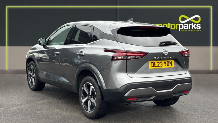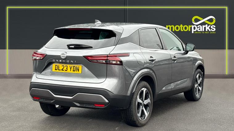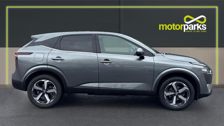 Features include Adaptive Cruise Control+Speed Limiter, Keyless Entry+Go, Blind Spot Assist, Front+Rear Sensors wa 360 Camera and even Drive Modes. Step into style and efficiency with the 2023 Nissan Qashqai N-Connecta 140ps Mild-Hybrid (MHEV), finished in sleek Gun Metal Metallic. This compact SUV blends modern design, advanced technology, and hybrid efficiency, making every journey both enjoyable and economical. Under the bonnet, the 1.3L turbocharged petrol engine with mild-hybrid technology produces 140PS, paired with a smooth manual gearbox. The mild-hybrid system improves fuel efficiency and reduces emissions, while keeping the drive responsive and engaging. The N-Connecta trim enhances comfort and convenience with 18-inch alloy wheels, LED headlights, front fog lights, rear privacy glass, and roof rails. Inside, the cabin is equipped with cloth seats, dual-zone climate control and a multifunction steering wheel. Technology takes centre stage with a 10-inch touchscreen infotainment system featuring sat nav, Apple CarPlay + Android Auto, DAB radio, Bluetooth connectivity keeping you connected and confident on every drive. Practicality is a key strength, with ample boot space, 60:40 split-folding rear seats, and Isofix child seat points, making it ideal for family life or weekend adventures.