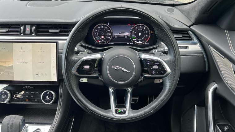 Our fantastic Jaguar F-Pace is presented in a stunning specification with a huge range of brilliant features and optional extras, complimenting a sublime drive. Our F-Pace R-Dynamic HSE is finished in Santorini Black matched over Ebony Windsor leather interior, and comes equipped with some brilliant features and optional extras, including, 14-way Heated and Cooled front Performance seats with Memory function, Two-zone Climate Control, Meridian Sound System, Privacy Glass, Premium LED Headlights with Signature DRL, Keyless Entry, Adaptive Cruise Control, Lane Keep Assist, Blind Spot Assist, Front and Rear Parking Aids, Rear Camera, Apple CarPlay and Android Auto, DAB Radio, Wireless Device Charging, and more. Call today for more information.