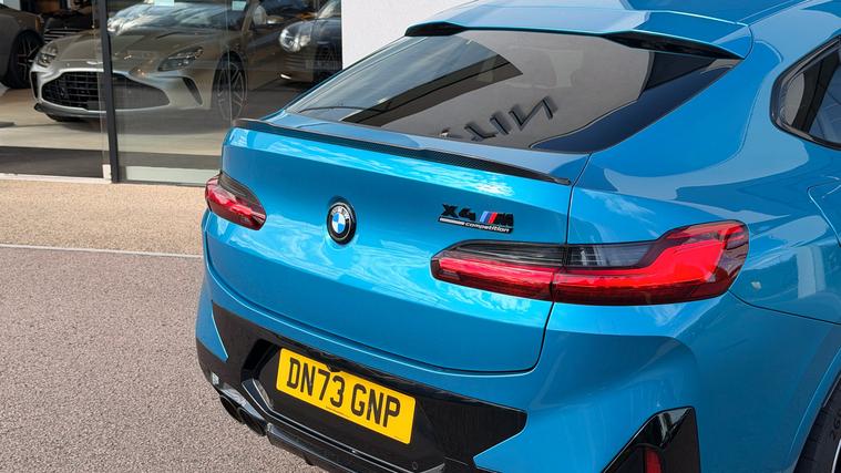 Amazing opportunity to own an Individual BMW X4M Ultimate please speak to either Nick or Ollie for more indormation. Aston Martin Hatfield are pleased to offer this 2 owner Individual Atlantis Blue BMW X4 M Competition finished off with Adelaide Grey Extended Merino Leather. Alongside the standard features this vehicle includes the following factory fitted options: 21 V-Spoke Bicolour Alloys, M Brakes with Black Calipers, Ultimate Pack (Technology Plus, Comfort Plus, Visibility Pack) Carbon Mirror Caps. This vehicle also features a Service Inclusive Pack running until 28/12/2028.