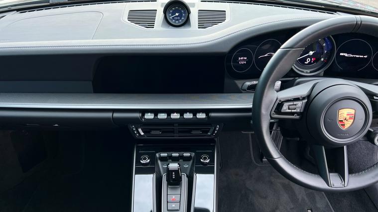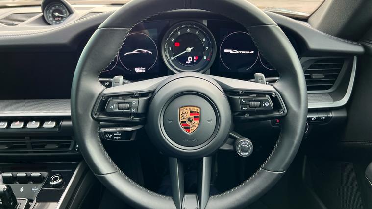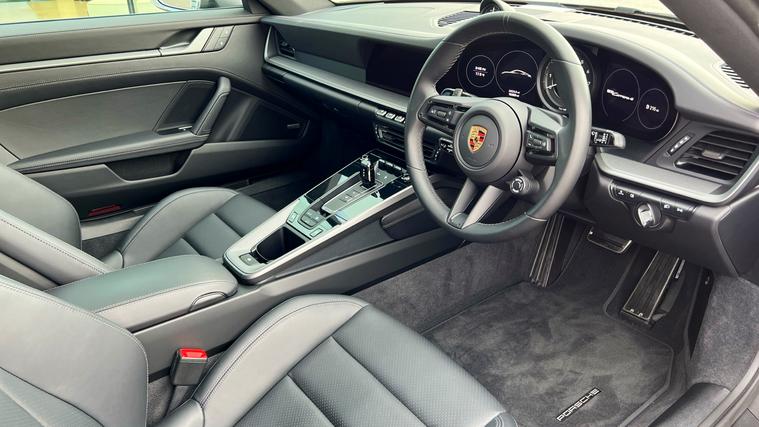 Porsche 992.1 4 Wheel drive with all the right options. Experience the thrill of precision engineering with the Porsche 911 2dr PDK, now in captivating Agate Grey Metallic. Feel the power of the Sport Chrono Package, unleashed through the Sports exhaust system and Carrera Satin Black Alloy wheels. Steer with finesse, thanks to Power Steering Plus and the Heated GT Sports Steering Wheel. Open up the Slide and Tilt Sunroof for a rush of freedom. Enjoy unmatched acoustics with the BOSE Sound System. Illuminate your journey with Tinted Matrix LED lights PDLS Plus and Exclusive Design Taillights. Sink into Sports seats Plus, basking in the Light design package. Pure Porsche. Pure performance.