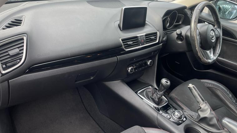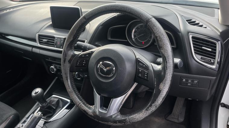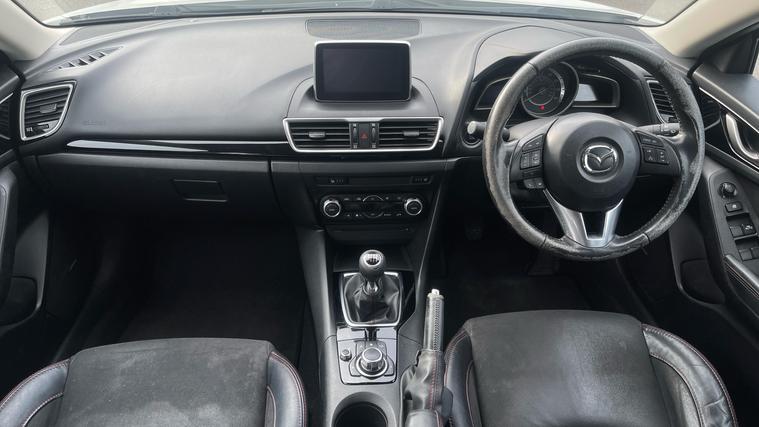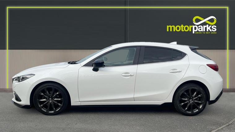 Our Mazda 3 features essential like Mazda Navigation, Heated Front Seats, Premium BOSE Sound, Cruise Control with Speed Limiter and Reversing Camera. Experience the thrill of driving with the Mazda 3 2.0 Sport Black 5dr, where innovation meets elegance. Slide into the refined comfort of heated front seats and grip the leather steering wheel, as the world comes alive with the Premium BOSE Centrepoint Surround System. Navigate seamlessly with the Satellite Navigation System on the 7-inch Color TFT Touch Screen. Stay connected through Aha and Stitcher App Integration, while the Bluetooth System ensures hands-free convenience. Relish moments of precision with Cruise Control and adjustable speed limiter. Feel confident with Rear Parking Sensors and a Reversing Camera. Elevate your journey with Mazda.