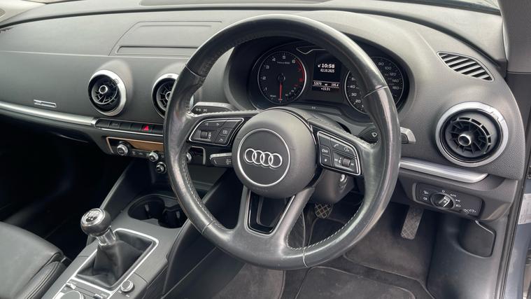 Specification of this our stunning Audi A3 includes MMI Navigation, Rear Parking Sensors, Lane Departure Warning, Cruise Control and much more. Our Audi A3 car looks stunning and features 17in Alloy Wheels in this 'Sport' specification. The sporty finish of this model continues into the cabin with a 'Leather Sequence Cloth' upholstery that includes Isofix Points in the rear The rear bench also lowers in a 60:40 design to expand the 380 litre boot. Through the excellent 'MMI Navigation' media display access is provided to DAB radio bands and media connections through Bluetooth. Audi Virtual Cockpit, Rear Parking Sensors and Satellite Navigation are also featured as standard.
