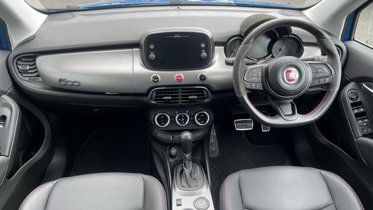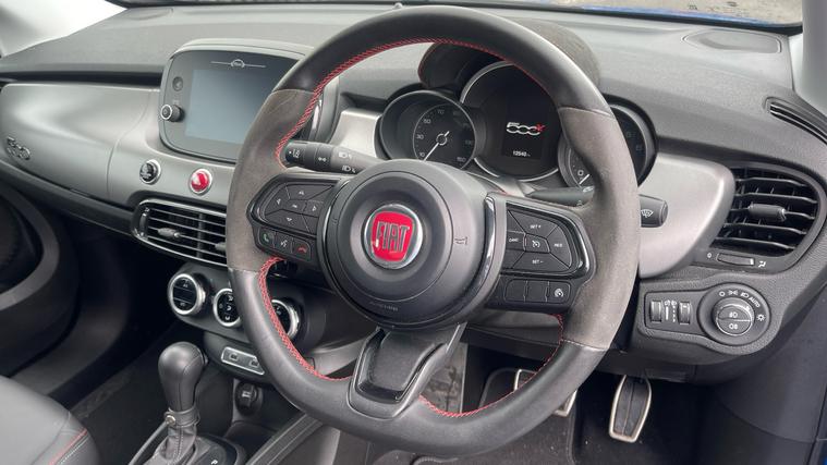 Our Fiat 500X Sport trim features Sport Plus Pack, 3D Navigation, Reversing Camera, Drowsy Driver Detection, Cruise Control and Apple CarPlay+Android Auto. Introducing the Fiat 500X 1.5 Hybrid 48V Sport, where Italian style meets cutting-edge technology. Slide into a cabin that boasts a 3.5-inch TFT colour screen and a 7-inch HD touchscreen with DAB radio and Bluetooth. Navigate effortlessly with 3D Navigation and enjoy seamless connectivity with Apple CarPlay and Android Auto. The Sport Plus Pack elevates your drive, complemented by a wrapped leather steering wheel with intuitive audio controls. Stay safe with features like Cruise Control, Drowsy Driver Detection, and the Parkview Rear Parking Camera. Experience the dynamic feel of Fiat, designed for drivers who crave style and sophistication.