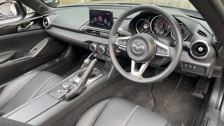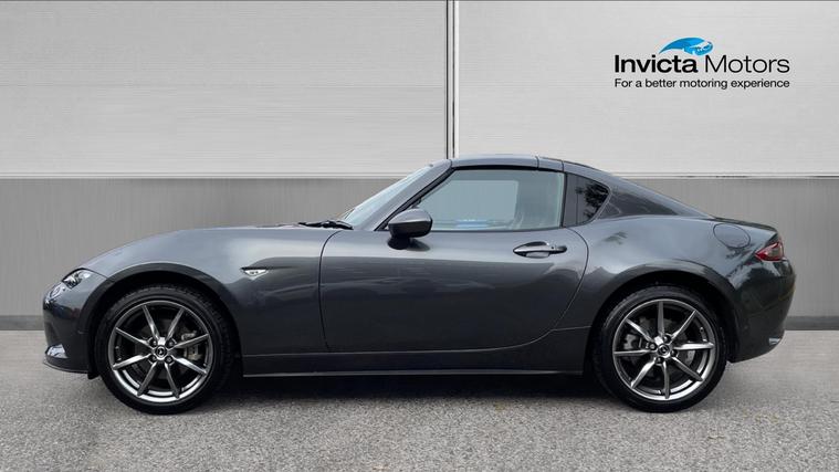 A stunning low mileage MX-5 RF Sport Tech finished in Machine Grey. Unleash your spirit of adventure with the Mazda MX-5 2.0 184 Sport Tech. Feel the thrill with no compromise, as you sink into luxury with heated seats and a premium BOSE audio system. Navigate effortlessly with built-in navigation and maintain ultimate safety with Blind Spot Alert and a reverse camera. With Keyless Entry, your journey begins with a touch, while Cruise Control elevates every drive into a symphony of comfort. Embrace the road with the precision engineering only Mazda can deliver. This isn't just drivingit's a celebration of freedom. Mazda MX-5: Pure automotive joy.