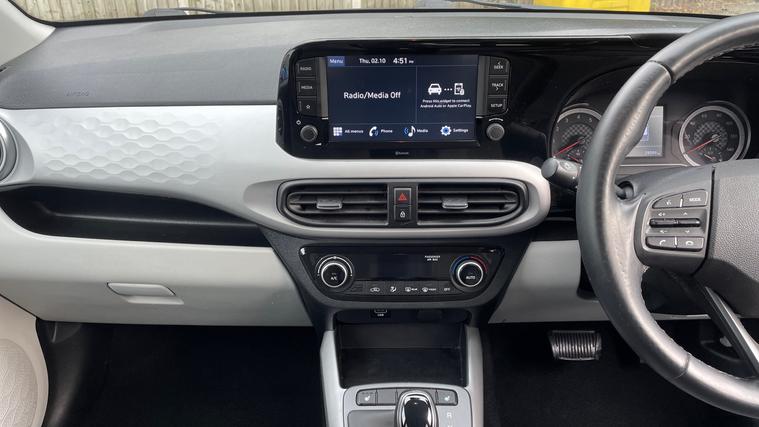 Our stunning Hyundai i10 comes fitted with Rear View Camera, Cruise Control with Speed Limiter, Lane Departure Assist and even Apple CarPlay/Android Auto. Seamlessly integrate your journey with Wireless Android Auto and Wireless Apple CarPlay, all controlled through an 8-inch touchscreen. Safeguard your drives with Forward Collision Avoidance Assist and a Lane Departure Warning System, while a Rear-View Parking Camera makes every parking task a breeze. Stay connected with Bluetooth voice recognition, and enjoy the comfort of cruise control with a speed limiter. The Hyundai i10 is more than just a driveit's a smart, connected journey crafted for your comfort and safety. Step in and elevate your ride.