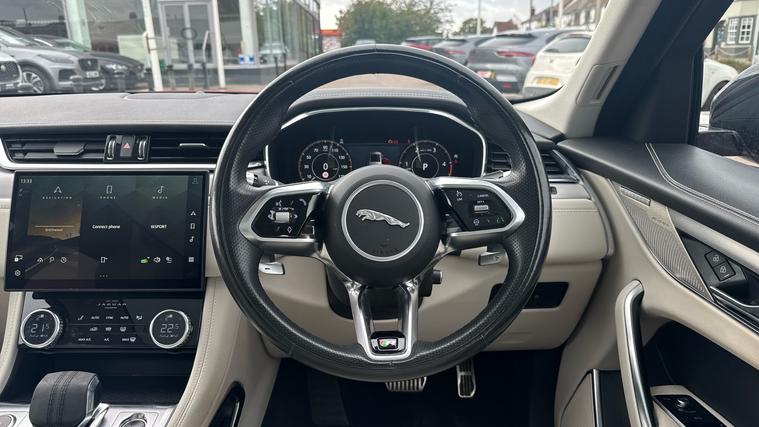 Great looking 1 owner F-Pace with main dealer history. R-Dynamic SE F-Pace in Firenze Red with full black pack exterior including 20 inch gloss black alloys. Spec also includes Panoramic sunroof, Heated windscreen, Heated Leather seats, Power tailgate, LED headlights, Apple car play and Android auto.
