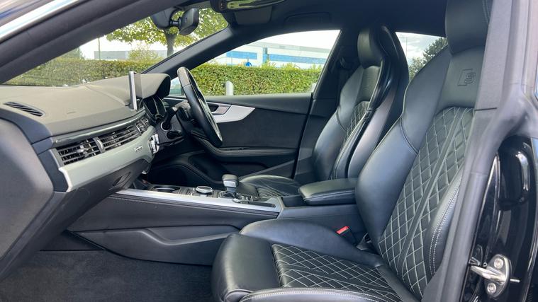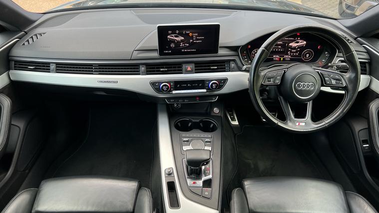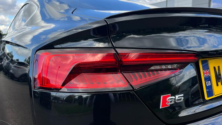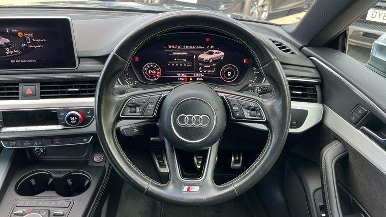 A brilliant four-door sports coupe, with a great range of features and optional extras, complimenting a great drive thanks to its powerful V6. Our Audi S5 is finished in Mythos Black over Black Valcona leather interior, and comes equipped with some brilliant features and optional extras, including, 6-way Heated electric front seats with Massage function, Three-zone Climate Control, Privacy Glass, LED Headlights, Cruise Control, Front and Rear Parking Sensors, Rear Camera, DAB Radio, Bluetooth Connectivity, Audi Virtual Cockpit, and much more. Call today for more information.