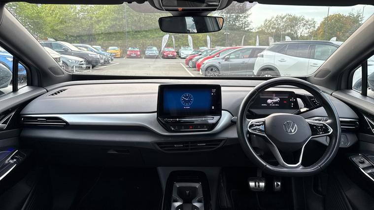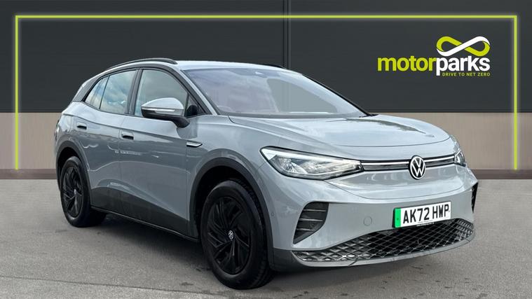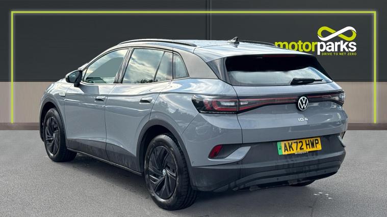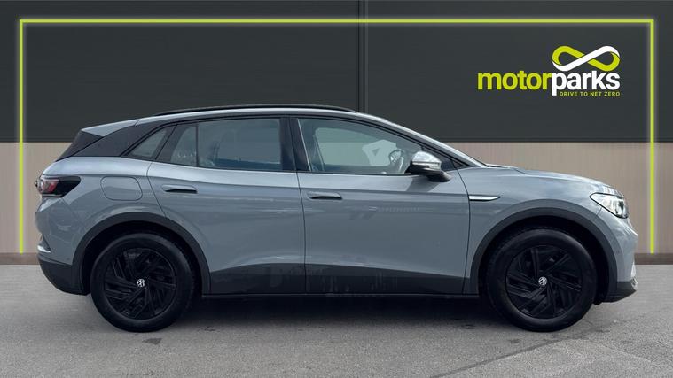 Features include Lane Assist, Adaptive Cruise Control+Speed Limiter, Heated Windscreen, Keyless Go, LED Lights wDusk+Rain Sensors and even Folding Mirrors. Discover the future of driving with the 2022 Volkswagen ID.4 Life Pure, finished in stylish Moonstone Grey. This fully electric SUV blends cutting-edge technology, practicality, and comfort in one forward-thinking package. Powered by a 52kWh battery and a 148PS electric motor, the ID.4 delivers smooth, quiet performance with instant torque and a range of up to 213 miles (WLTP) - ideal for both city commuting and weekend adventures. Charging is effortless, with 100kW rapid charging capability taking the battery from 1080 in as little as 30 minutes. The Life trim offers a well-balanced mix of features, including LED headlights, 19-inch alloy wheels, heated windscreen, tinted rear windows, and roof rails. Its aerodynamic design is both modern and efficient, giving the ID.4 a confident road presence. Inside, the cabin is spacious and minimalist, featuring heated front seats, a heated steering wheel, ambient lighting, and quality cloth upholstery. Technology is front and centre with the 10-inch infotainment touchscreen, Discover Navigation, Apple CarPlay, Android Auto, Bluetooth, and DAB radio, all paired with a crisp digital driver's display. Practicality is outstanding, with generous rear legroom, a large boot (543 litres), split-folding rear seats, and clever storage solutions, making it perfect for families or active lifestyles.