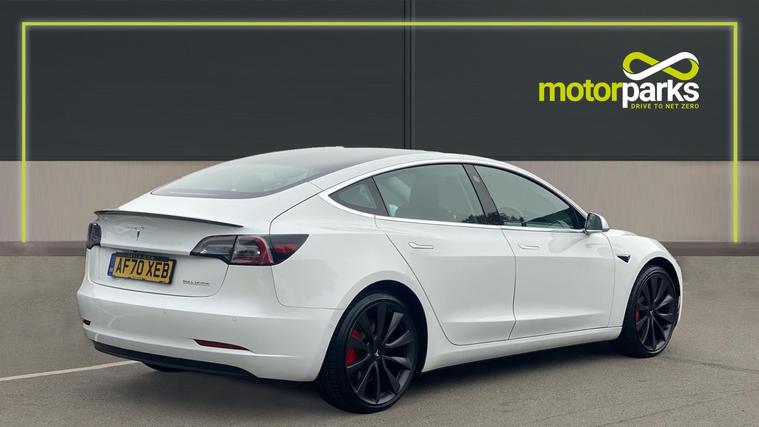 The 2020 Model 3 Performance is more than just speed it offers premium finishes, high tech and feature-rich comfort in addition to jaw-dropping acceleration. The 2020 Tesla Model 3 Performance (Performance Upgrade) delivers blistering electric performance matched with upscale comfort and tech. It features dual motors with all-wheel drive, sharp handling thanks to performance brakes, an aerodynamic carbon-fibre spoiler, and forged alloy Performance wheels. The cabin is richly equipped with heated sport front seats (with good bolstering), a panoramic glass roof, keyless entry, dual-zone climate control, ambient lighting, a premium audio-system, and a high-resolution central touchscreen with navigation. Additional conveniences include front + rear parking sensors, reversing camera, blind-spot monitoring, full LED lighting, heated steering wheel, and Tesla's Autopilot driver-assist features. With zero tailgate emissions, rapid charging capability and access to Tesla's Supercharger network, it blends everyday usability with exhilarating drive-quality.