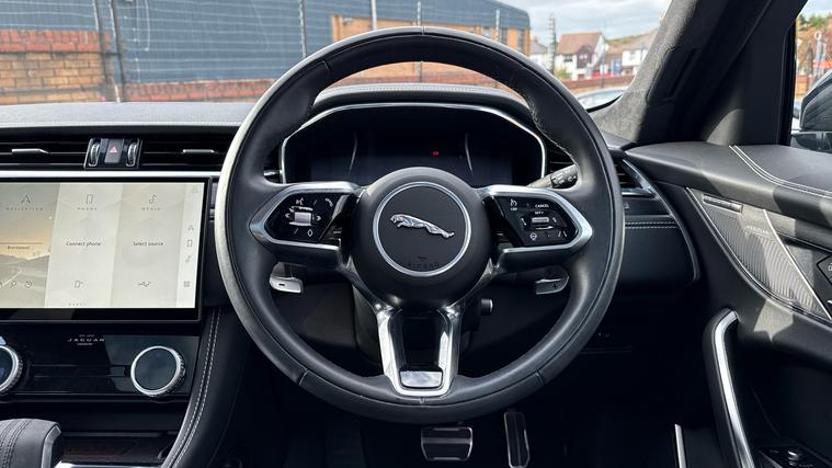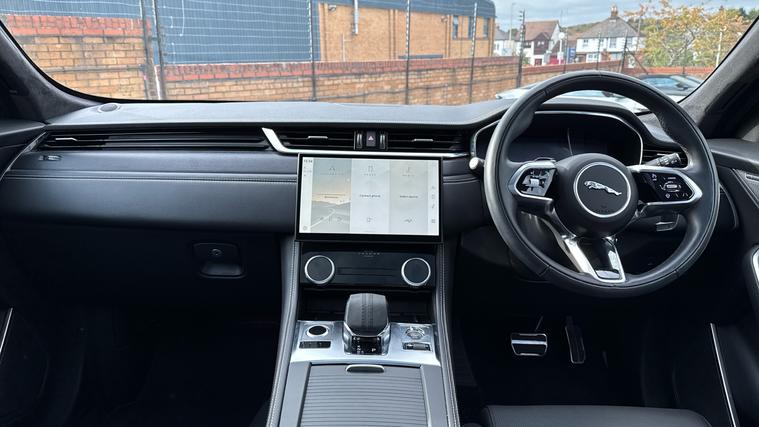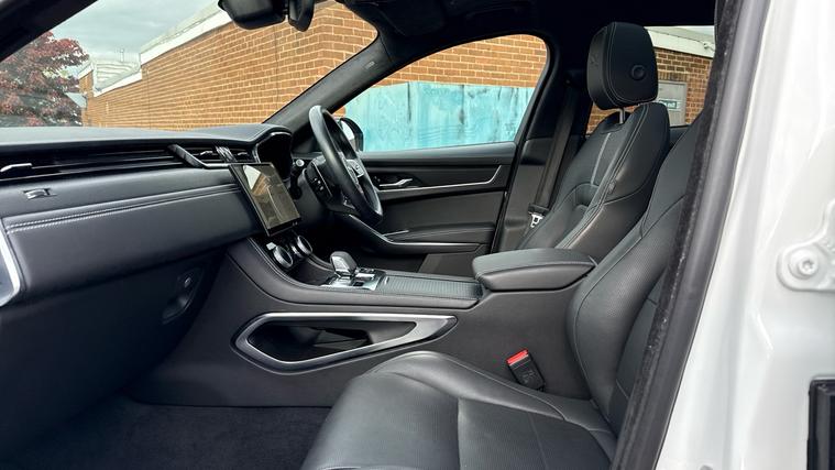 Stunning HSE spec F-Pace in white with full black pack exterior . Top spec HSE with 21 inch gloss black alloys, Panoramic sunroof, Heated and cooled leather seats with memory functions, Meridian soundsystem, Apple car play / Android auto with wireless phone charging, Heated windscreen, Front and rear parking sensors with rear view camera, Powered tailgate, LED headlights and Privacy glass.