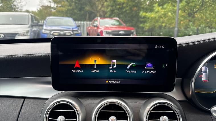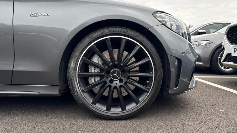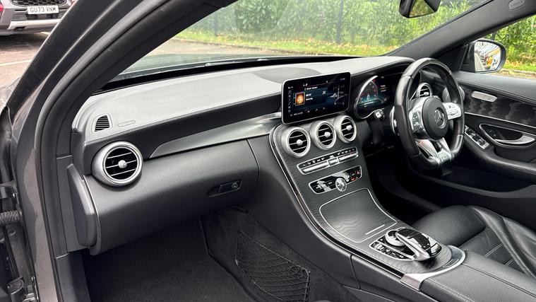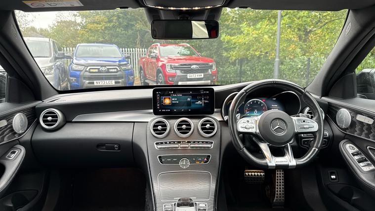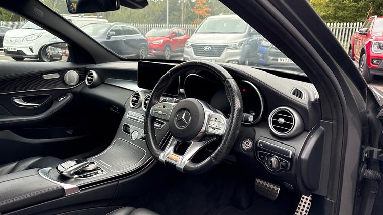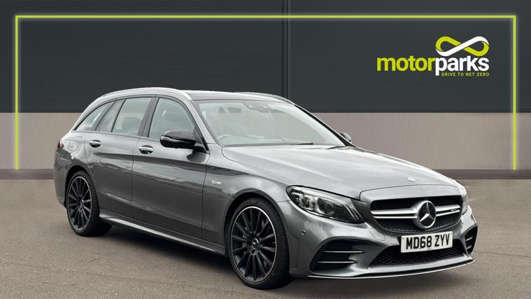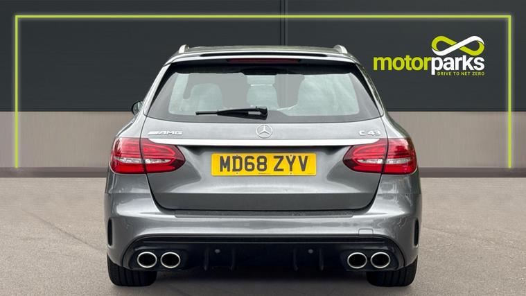 Features include Park Assist wa Rear Camera, Dusk+Rain Sensors, Cruise Control+Speed Limiter, Keyless Entry+Go, a Burmester Sound System and even Drive Performance Modes. Experience performance, practicality, and pure AMG precision with the 2018 Mercedes-AMG C43 Premium Plus 4MATIC Estate, finished in stunning Selenite Grey Metallic. This high-performance estate blends exhilarating power with everyday usability, the perfect balance of luxury and adrenaline. Under the bonnet, the 3.0-litre twin-turbocharged V6 engine produces a thrilling 367PS and 520Nm of torque, launching from 0-62mph in just 4.7 seconds. Paired with the 9G-Tronic automatic gearbox and AMG Performance 4MATIC all-wheel drive, it delivers razor-sharp responsiveness and superb traction in all conditions. The AMG styling package gives the C43 unmistakable road presence, featuring aggressive front and rear bumpers, AMG diamond grille, 19-inch AMG multi-spoke alloy wheels, quad tip exhausts, and subtle chrome detailing - all perfectly complemented by the sophisticated Mountain Grey Metallic finish. Step inside and you're greeted by a cabin that blends sportiness and refinement. The Premium Plus pack includes heated AMG performance seats in leather and Alcantara, Burmester surround sound system, COMMAND Online navigation and the Panoramic glass sunroof that floods the interior with light. Technology and convenience are at your fingertips with keyless entry and start, reversing camera, parking sensors, LED Intelligent Light System, and ambient interior lighting.